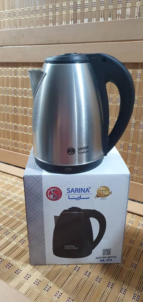 کتری برقی سارینا داخل استیل و بدنه استیل میباشد جنس بدنه استیل ضدزنگ و ضخیم می باشد ظرفیت کتری ۱.۸ لیتر تکنولوژی جوش آرام و بی صدا سوییچ on/off ایمنی خودکار هنگام جوش آمدن دارای المنت استریکس اورجینال میباشد.گ
