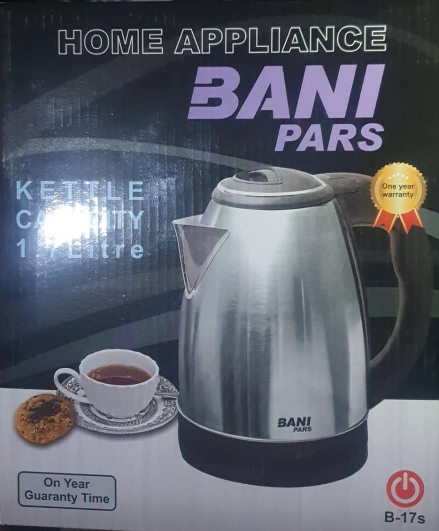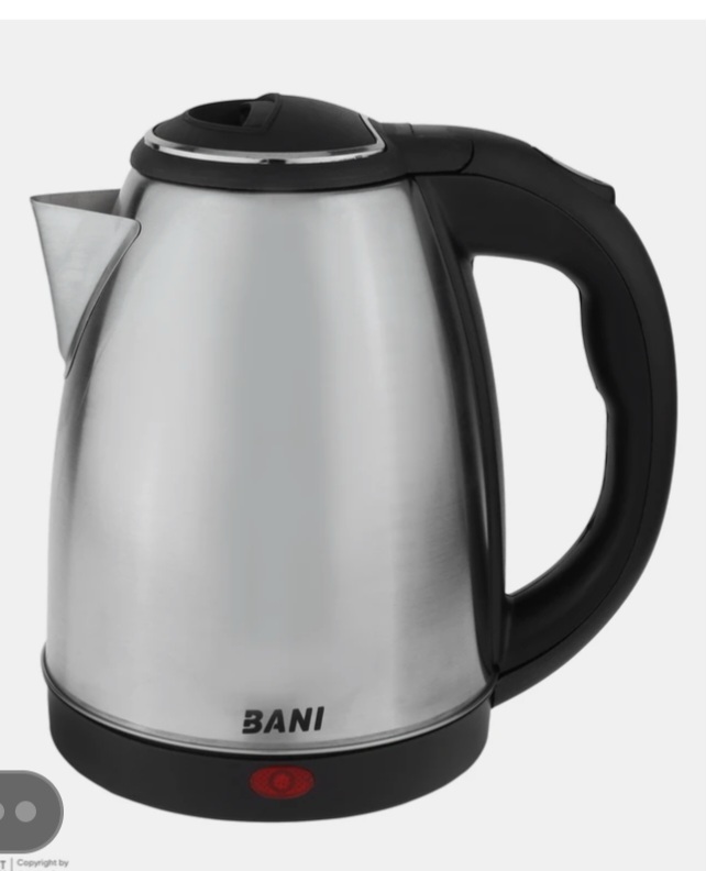 کتری برقی بانی داخل استیل بدنه استیل دارای ظرفیت کتری ۱.۸ لیتر تکنولوژی وجوش آرام و بی صدا میباشدوسوییچ on/off ایمنی خودکار هنگام جوش آمدن و همچنین دارای المنت استریکس اورجینال میباشد