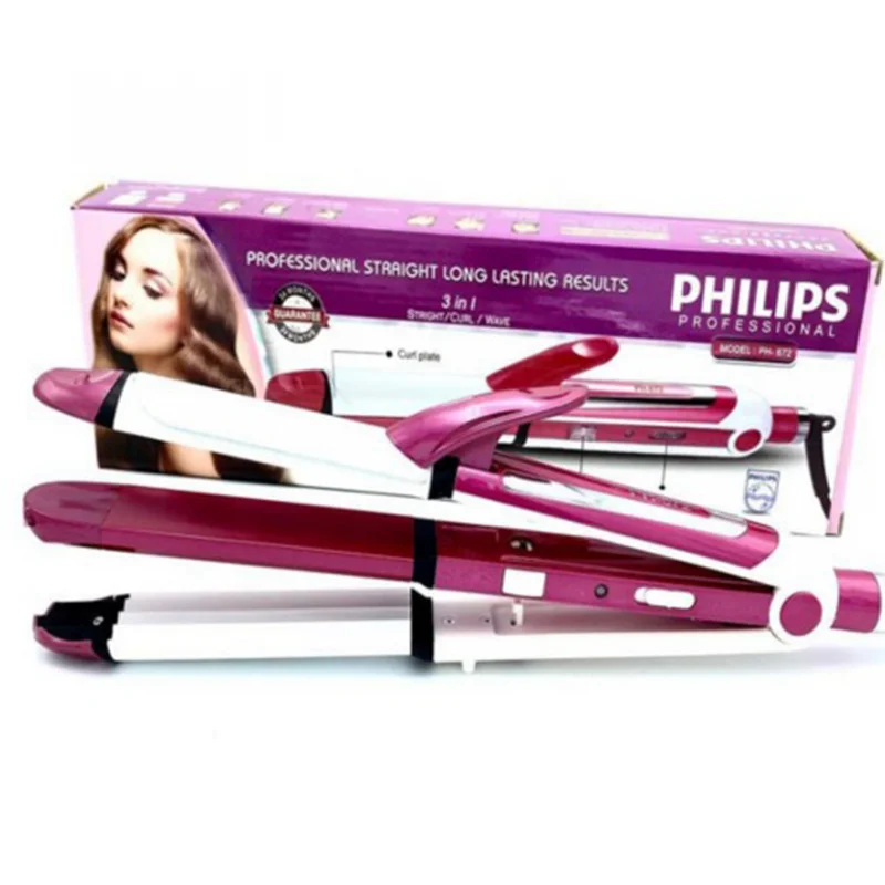 اتو مو سه کاره فیلیپس دارای صفحه سرامیکی با اندازه صفحه متوسط و قابلیت تولید یون جهت صاف کردن،ویو مو و فر کردن مو طراحی و به بازار عرضه شده است . این اتو مو دارای سیم گردان 360 درجه ، بیشینه ی دما 200 درجه که در 60 ثانیه بطور کامل گرم میشود.این اتو مو قابل استفاده برای موهای خشک و مرطوب است .